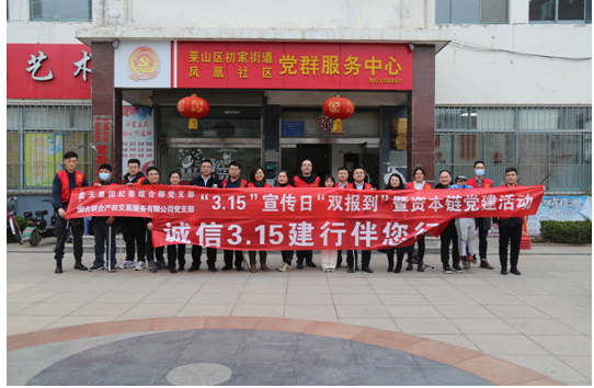為進一步普及社區(qū)群眾消費者權益知識,增強日常消費、網(wǎng)絡消費、金融消費的維權意識。315日下午,藍天集團紀委綜合部黨支部和煙臺聯(lián)合產(chǎn)權交易服務有限公司黨支部邀請聯(lián)合產(chǎn)權“資本鏈”黨總支聯(lián)盟單位,以紅色黨建為引領,以消費者權益日為契機,在初家街道鳳凰社區(qū)開展“3.15”宣傳日雙報到暨資本鏈黨建活動。集團黨委委員、聯(lián)合產(chǎn)權黨支部書記、董事長初志杰同志,集團黨委委員、紀委書記湯志厚同志,以普通黨員身份參加。