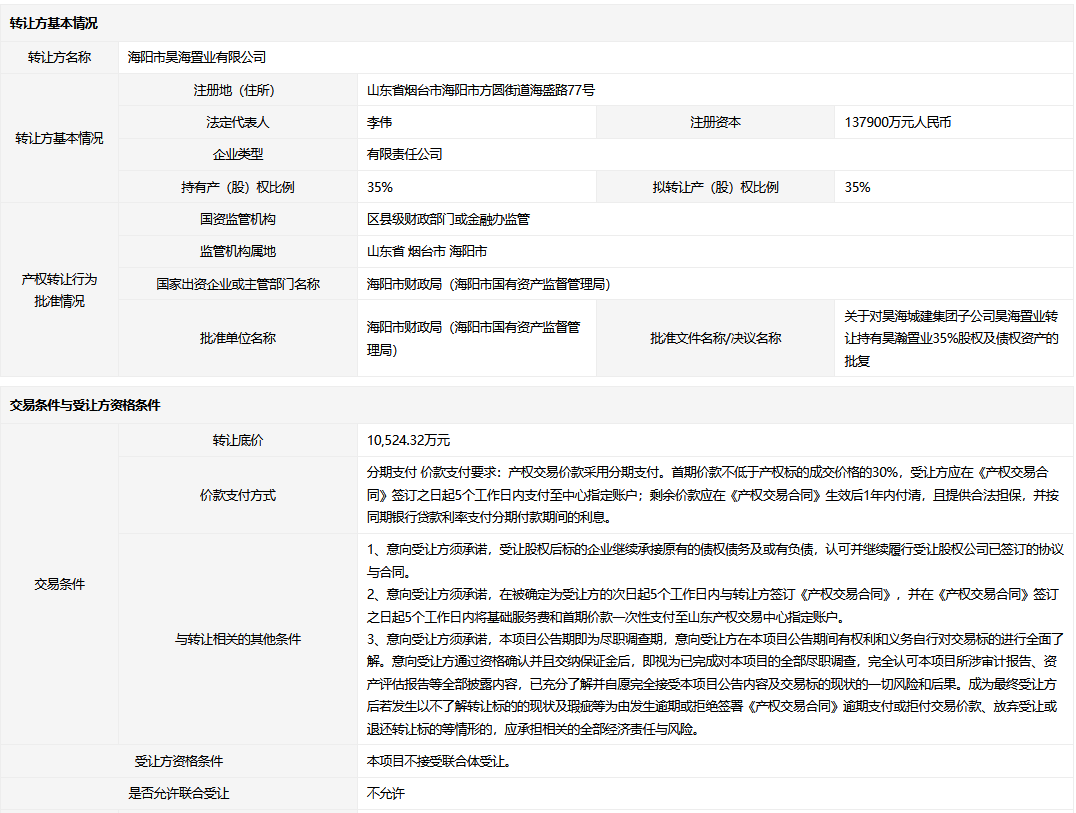 轉(zhuǎn)讓方:海陽市昊海置業(yè)有限公司