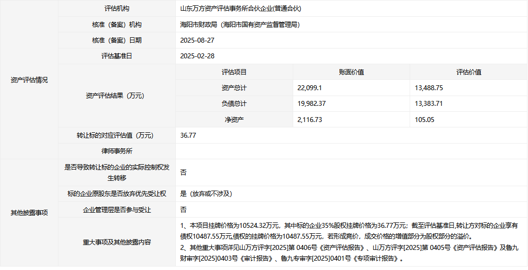 海陽市昊瀚置業(yè)有限公司35%股權(quán)及10487.55萬元債權(quán)