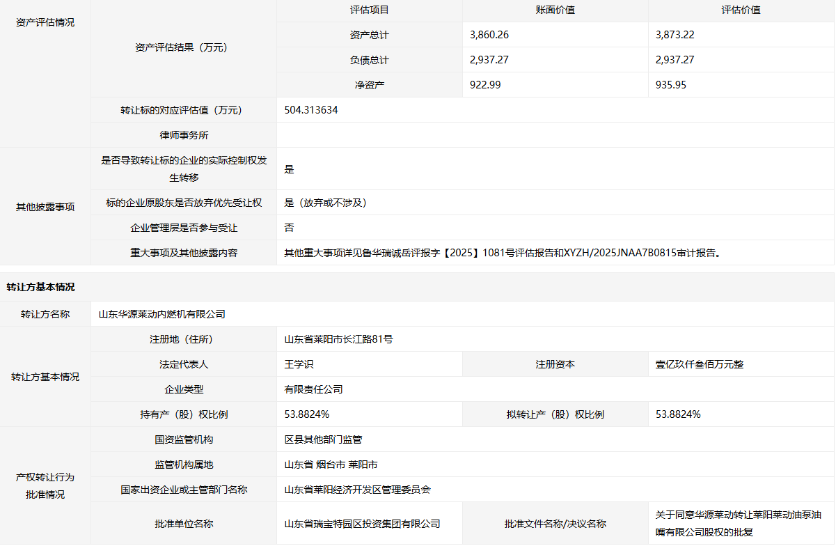 • 轉(zhuǎn)讓方: 山東華源萊動內(nèi)燃機(jī)有限公司
