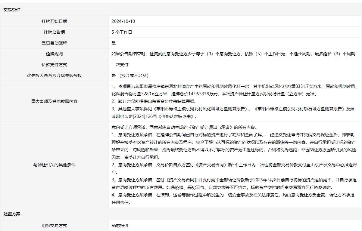 掛牌起止日期:2024年10月10日至2024年10月15日