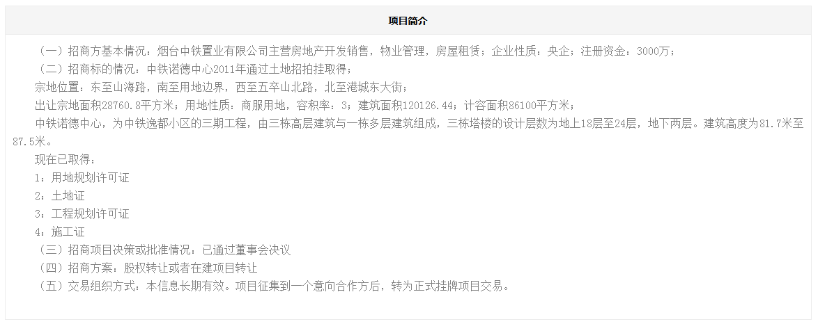 中鐵煙臺諾德中心商服土地一宗