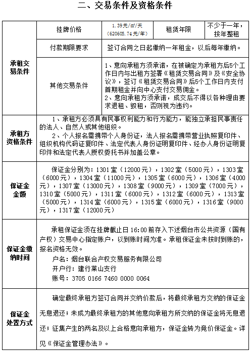芝罘區(qū)北馬路240號(hào)大樓部分1層及2-3層招租交易公告