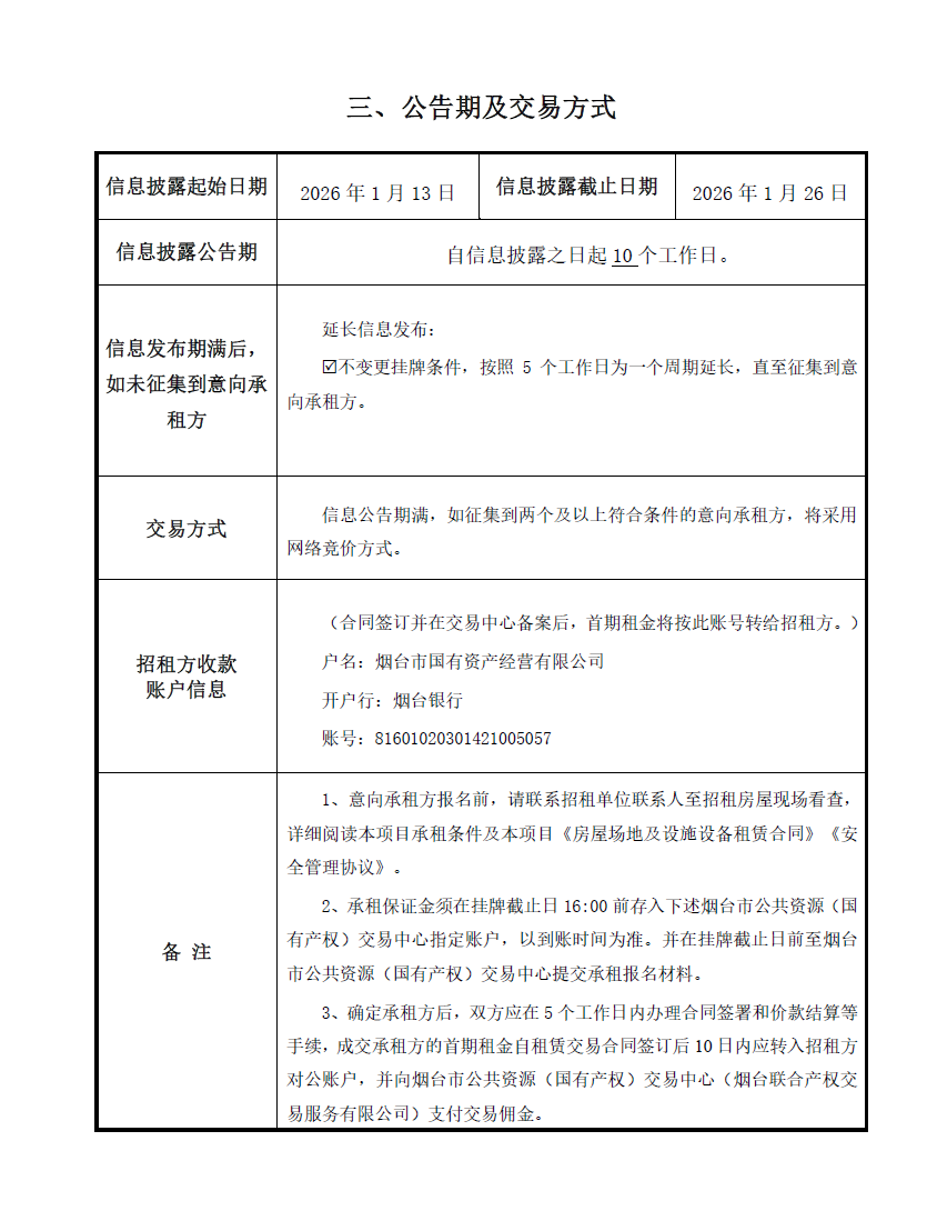 掛牌起止日期:2026年1月13日-2026年3月9日